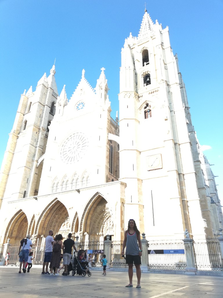 Tras varias subidas por caminos de arenilla, hemos conseguido entrar en León. Hemos ido directas a la residencia donde habíamos reservado para pasar la noche. Estamos en una habitación con baño privado y el sitio es maravilloso (céntrico, con espacio para bicicletas, cercano al supermercado, con micro, nevera y ascensor!!).