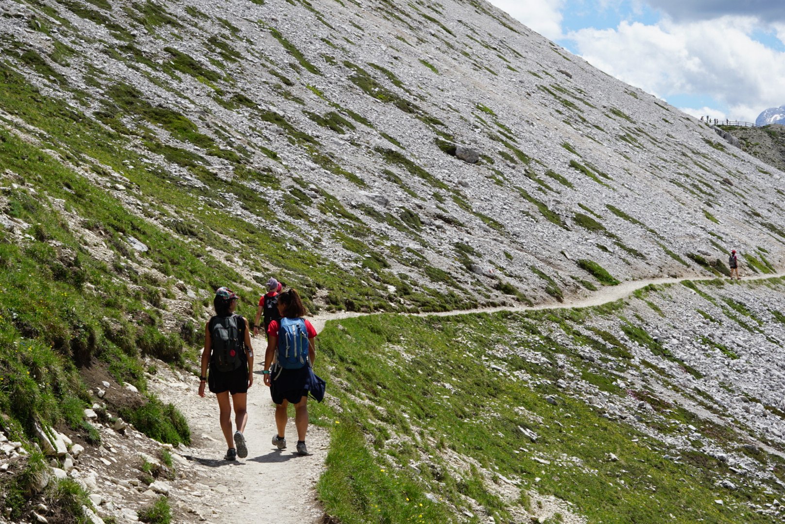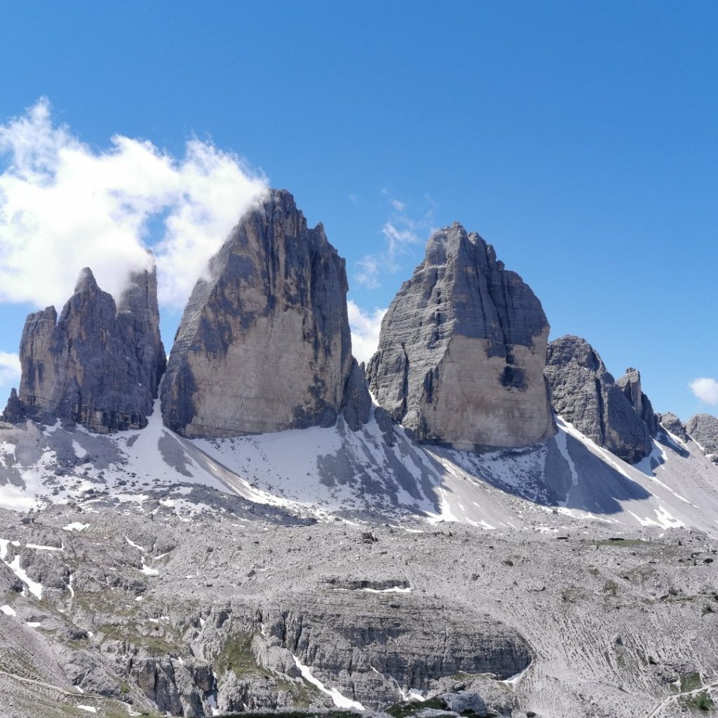 Una subida fuerte, repleta de curvas empinadas y impresionantes paisajes. Aparcamos al lado de otros cientos de coches y nos preparamos para la ruta. Un itinerario circular de 10 km (+450m) que nos hace pasar por varios refugios para poder contemplar la maravilla de las 3 cimas de Lavaredo y su entorno espectacular. La ruta no tiene casi dificultad a excepción de dos pequeñas rampas, por lo demás, es apta para todo el mundo y poco a poco y sin prisa se hace estupendamente. Siempre siguiendo el camino 101 y luego el 105. De todas maneras, no hay pérdida pues todo el mundo va hacia el mismo lugar, es más, en algunos tramos parece más bien una peregrinación, jeje.