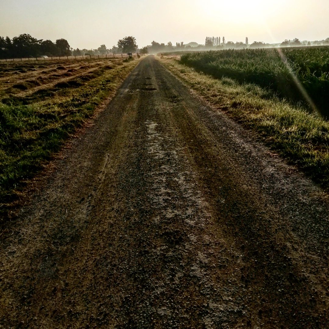 Los primeros rayos de sol me apuntaban directamente, el camino, sin pérdida alguna hacia ziga-zaga, con alguna pequeña cuesta que me obligaba a cambiar de piñón. Todo el recorrido está súper bien señalizado. España se puede reír de más del has amarillas del camino de Santiago. Comparado con esto, no tiene nada que ver.