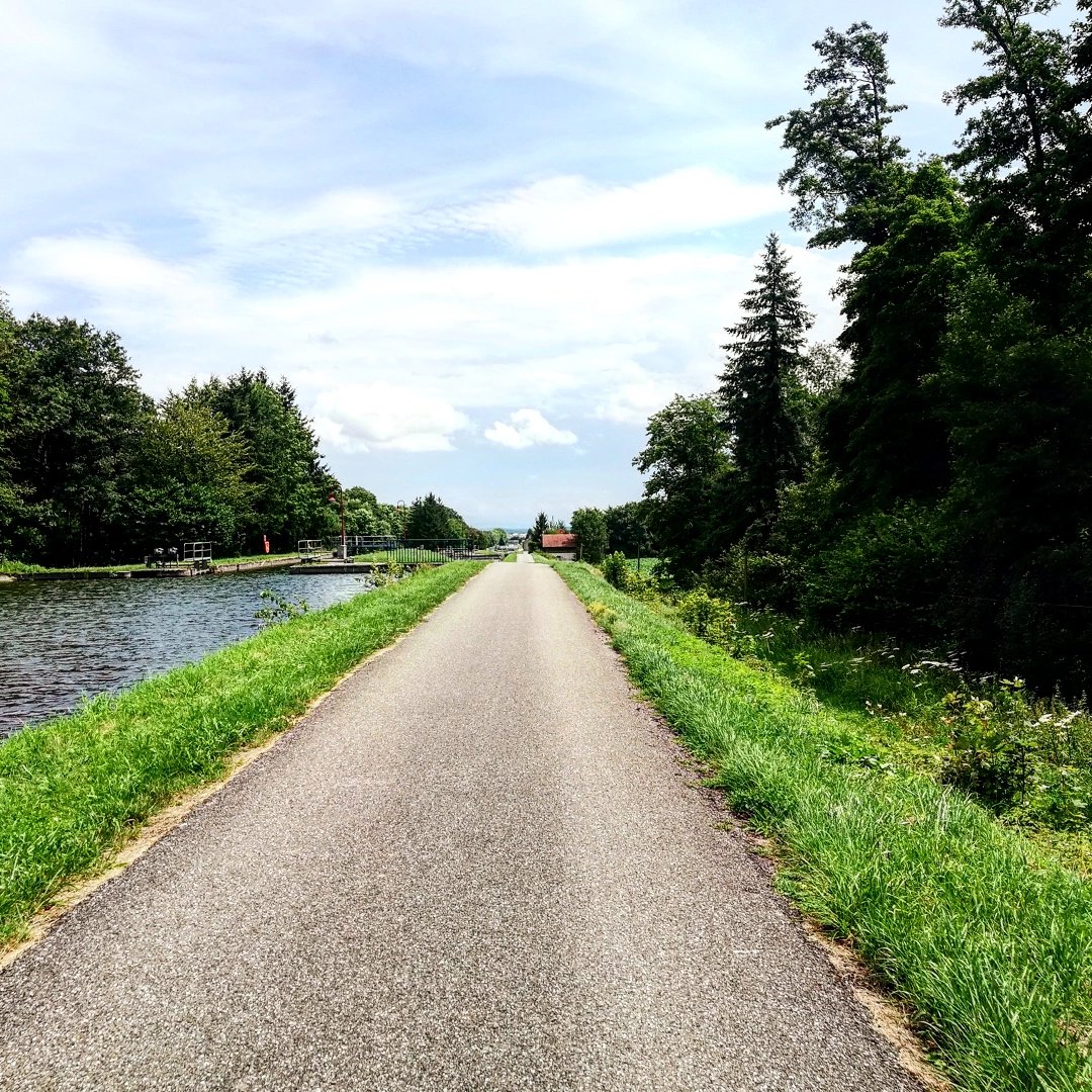 El pedaleo ha seguido a las 14.20 y en un abrir y cerrar de ojos estábamos en Mulhousen. Hemos ido a la oficina de turismo, a ver si nos daban algún mapa de las siguientes etapas pero no ha habido suerte (igual mañana en Basilea…)