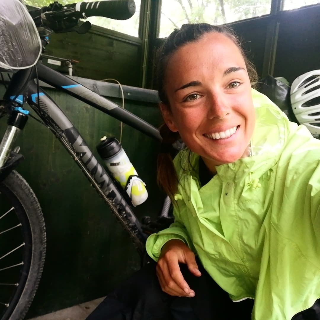 A las 14h he parado para comer el pan y queso que me quedaba de ayer, ya llevaba 80km. He decidido seguir otros 40km más, jugando al pilla-pilla con una nube gris oscuro que me perseguía. Al final, he ganado yo y no ha conseguido mojarme. Jejeje…