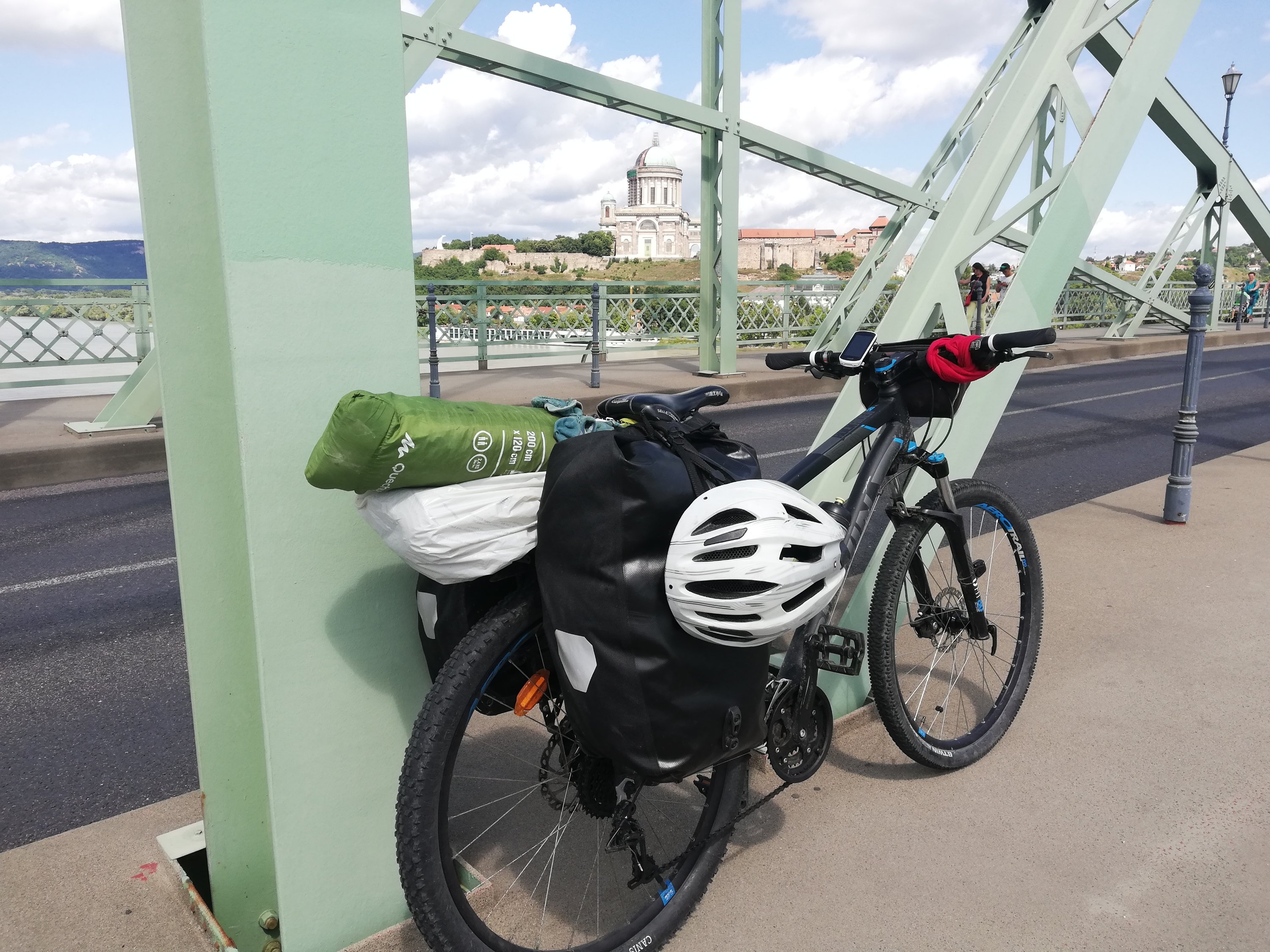 A los 145km aproximadamente dejo la Eurovelo 6 para cojer una carretera que me lleva durante 14 km hasta el puente de Esztergom. Ahí hay un coche de policía que hace la función de frontera/aduana.