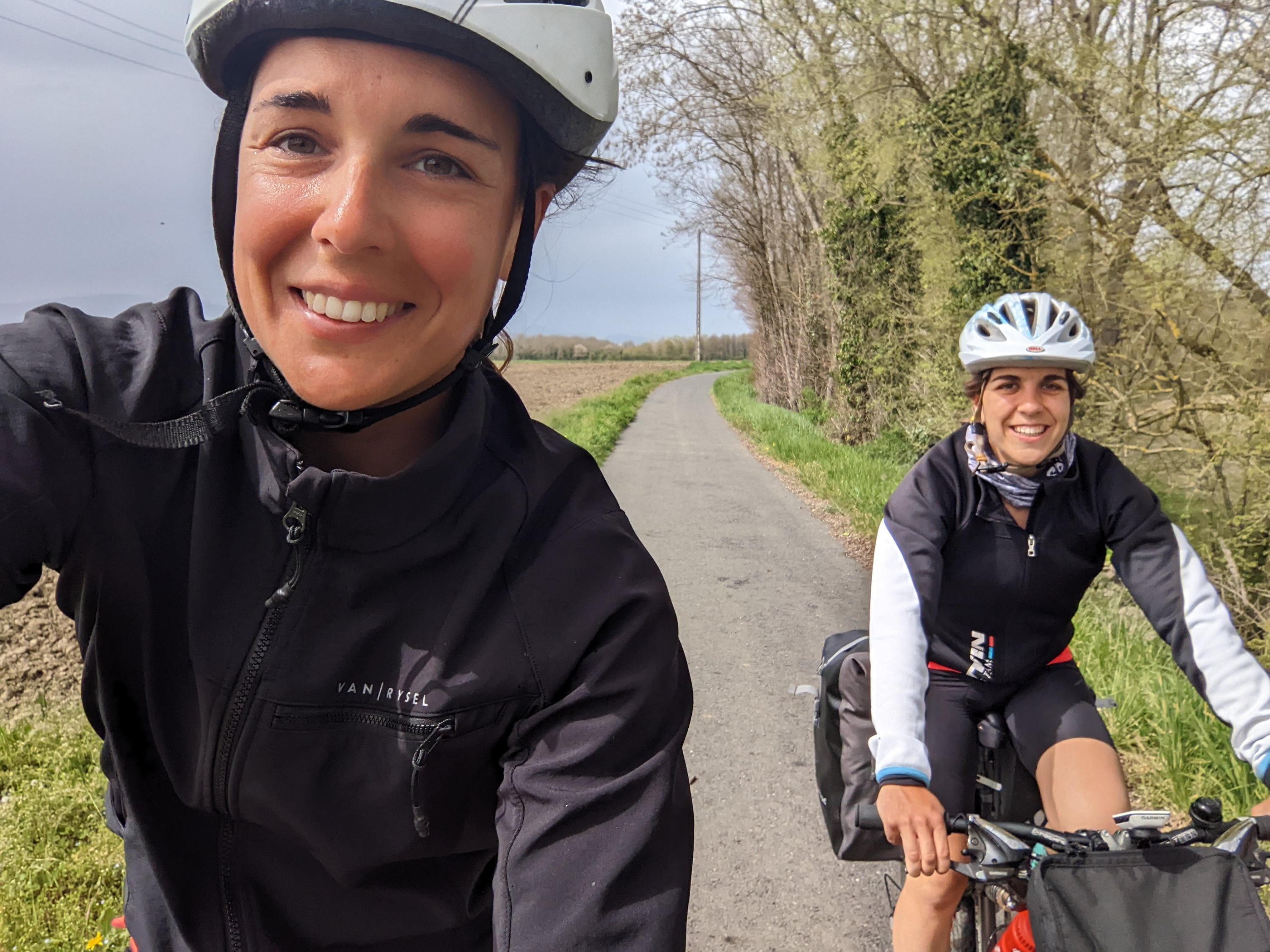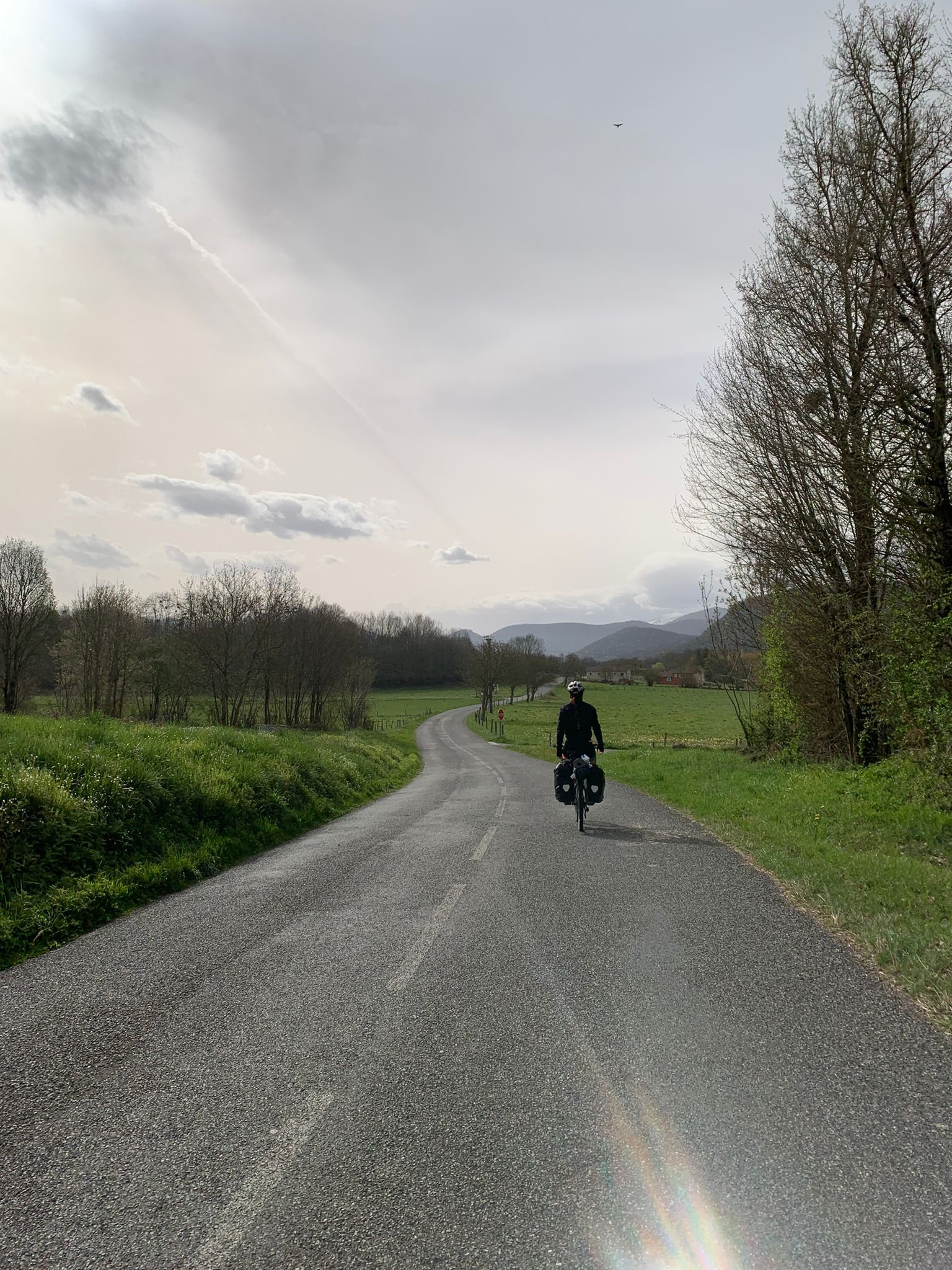 Pronto llegábamos a Lannemezan para encontrar, por arte de suerte, la señalización oficial que nos llevaba por caminitos explendidos y verdes hasta Saint Bertrand. Eran las 11 de la mañana con casi 50km. Íbamos bien, contentas, a un ritmo bueno y con 400 de desnivel positivo. Que podía ir mal?