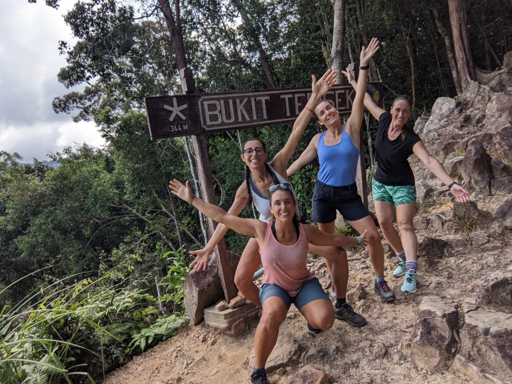 Hemos subido previamente al Bukit Teresek, una pequeña cima de la zona que se hace en en 1 hora, alternando en su mayor parte escalones. No sabemos el número exacto pero habría entre 600 y 1000. El sudor que hemos llegado a generar ha sido brutal. Dejando muestras de gotas de sudor por todo el recorrido.