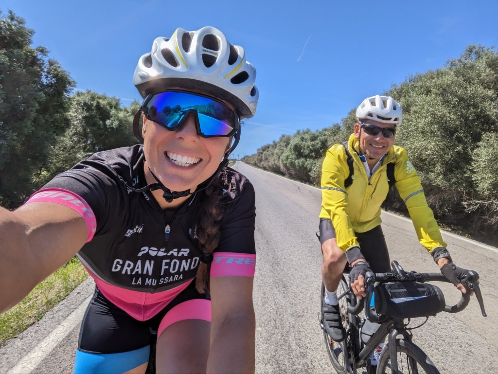 El camino pasa de ser carretera secundaria con subidas y alguna que otra bajada, por una pista firme y apta para nuestras bicicletas de carretera (no de gravel). El paisaje es increible y se respira paz. No hay nada más que nosotros y la naturaleza a nuestro alrededor.