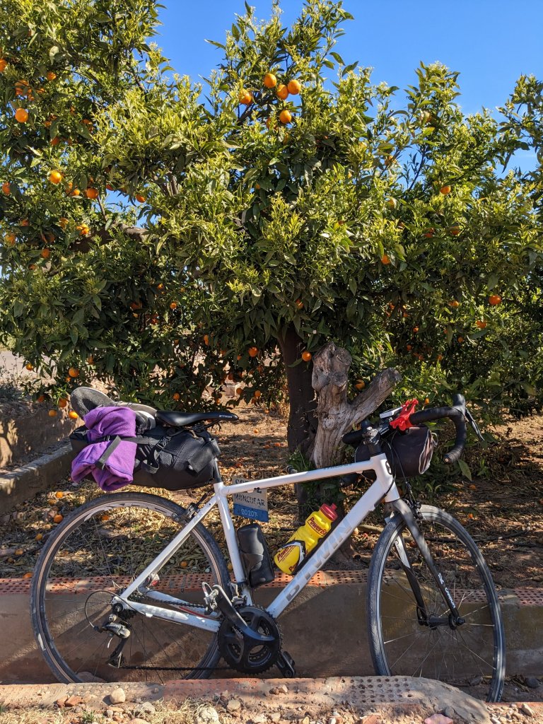 A las 12:00h estoy en Castellón, donde paro a comer alguna cosa y seguir dirección Oropesa. Sigo por caminos secundarios, atravesando cultivos de naranjos hasta que llego al Mar. Voy por el paseo marítimo pero hace tal viento que debo callejear. Se hace imposible avanzar y la sensación de pedaleo es desesperante.