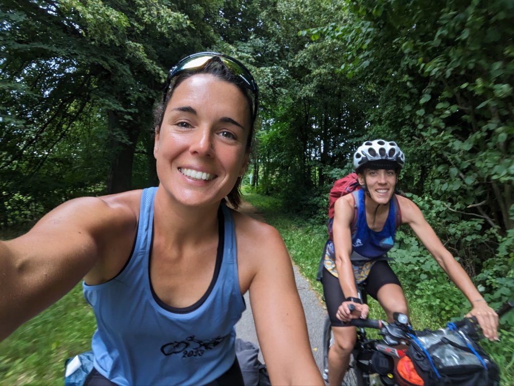 En Buxtehude (106 km después del inicio) me encuentro con Aida, que venia pedaleando desde el aeropuerto de Hamburgo. Nuestro encuentro, que ha sido bajo la lluvia, nos ha hecho movernos rápido y pedalear hasta al pueblo (aun suerte que ha aguantado todo el dia sin llover…).