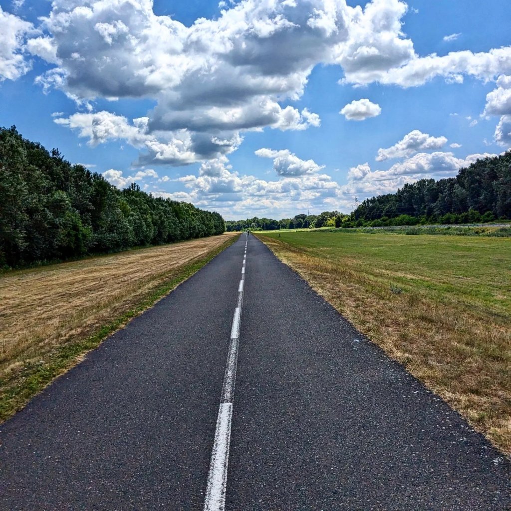 Sigo unos 50 km más, siguiendo la eurovelo 6 junto al río. Este año he decidido hacer esta primera parte por el lado opuesto, ya que hay carril bici hasta el pueblo donde llego hoy.