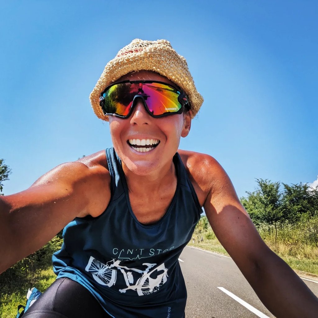 Nos hemos ido adelantando y cruzando constantemente porqué a veces yo paraba para ponerme crema o el se paraba en un área de servicio. Los últimos 40km los hemos hecho juntos, aunque no habla mucho inglés dice que está muy contento de haberme conocido ya que estos últimos 40km los hemos hecho rápido y el suele ir más despacio… La verdad es que íbamos lentos, yo estaba cansada y hacia casi 40 grados!