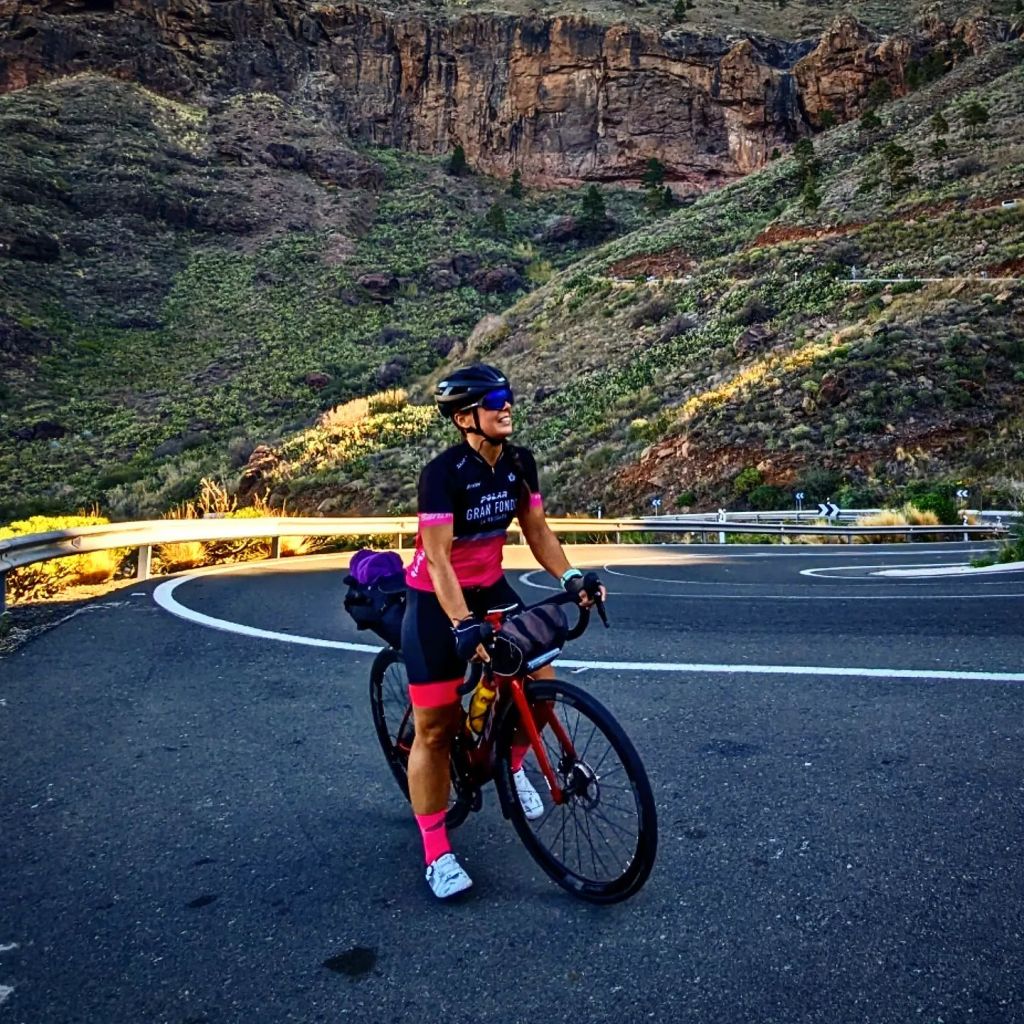 La subida no se hace del todo pesada, a parte, la infinidad de curvas acaban siendo entretenidas. El calor apreta pero, por suerte, antes de las 12:30h estamos en el punto más alto, llevamos 31km y nos quedan 35km más hasta Maspalomas.
