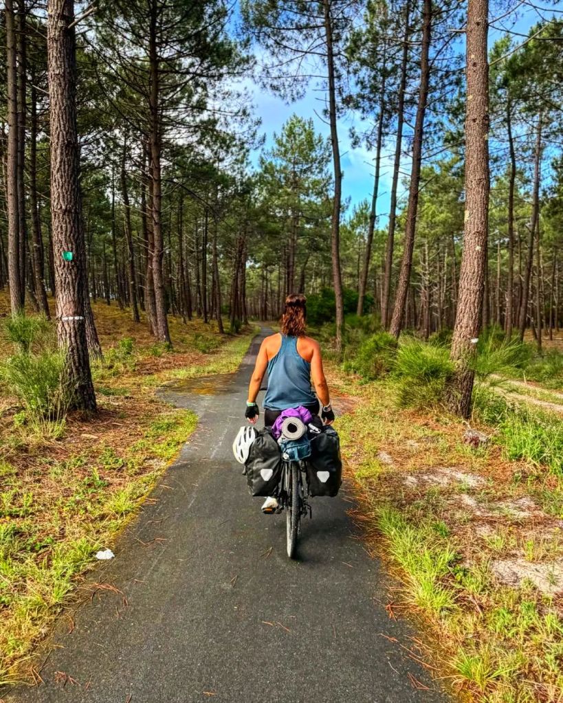 Ahora nos esperan 13km con una pequeña subida pero que se hace fácil (más sabiendo que estamos a punto de llegar). Pedaleamos junto al lago de Biscarrosse y nos adentramos en unas carreteras que nos conducen hasta el camping de hoy (21€ los dos). Un lugar estupendo, verde, alejado de las aglomeraciones, tranquilo y bonito. Qué más podemos pedir?