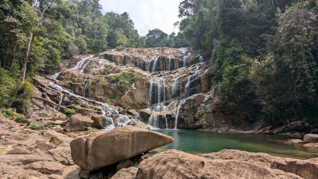 La entrada a las cascadas para gente no Malasia cuesta 10 RM. Ahí hemos ido a cambiarnos a los vestuarios que también disponian de baño y ducha, y luego hemos subido unas escaleritas hasta la zona más alta de baño donde nos hemos podido remojar un buen rato y hacer unas cuantas fotos.
