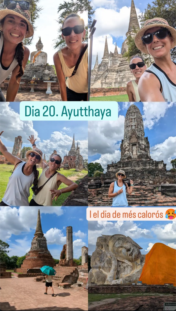Una vez en la estación, nos acercamos a las oficinas y nos dicen que no hay buses ahí, que debemos cruzar al otro lado para coger las minivan. Media vuelta, cruzamos la carretera por un puente elevado, compramos los billetes (70 BTH) y nos montamos, bien fresquitas, dentro de la van. Hasta que no se ha llenado, no hemos salido, así que hemos estado unos 40 minutos ahí dentro, más otros 75 hasta Ayutthaya.