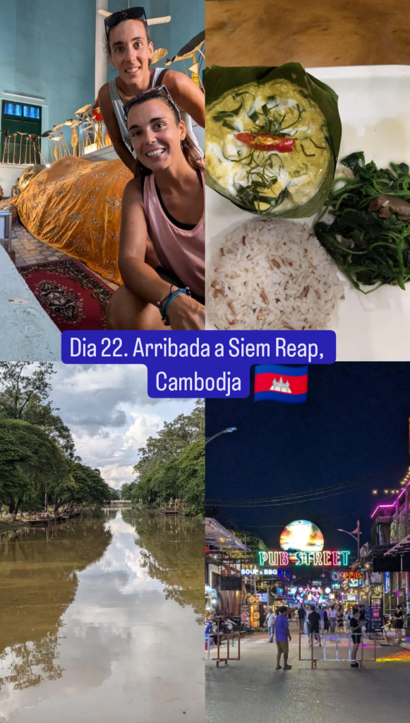 De vuelta al autocar, donde aprovechamos para ver alguna serie antes de llegar a Siem Reap. Una vez en el destino (sobre las 16:00h), caminamos hasta el hostel, nos duchamos y salimos a investigar la pequeña ciudad. Una ciudad orientada básicamente para el turismo ya que su mayor fuente de ingresos son los templos Angkor y, gracias a ello, el turismo se aloja, come y se hace masajes económicos en la ciudad.