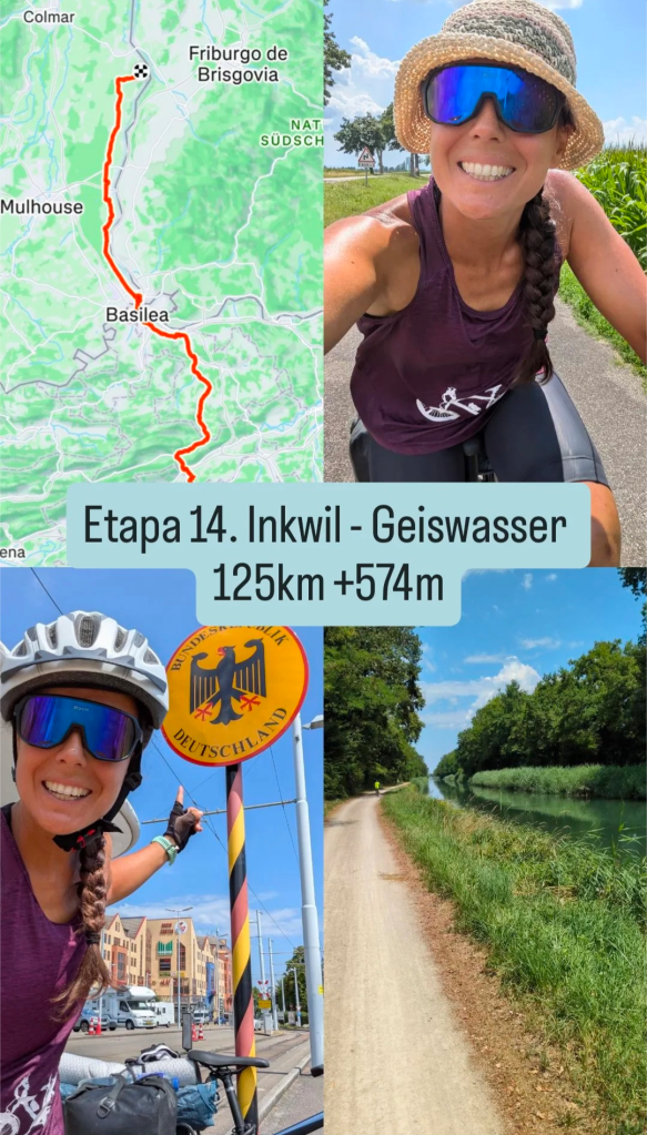 Los primeros 20 km se hacen fáciles, siguiendo una vía ciclista número 7.1. me paro para rellenar el bidón y emprender una suave subida de +250m en menos de 7km par alcanzar los 750m sobre el nivel del mar, ahora siguiendo la ruta ciclista 54. La bajada es bastante más larga y podría llegar a decir que la tendencia de bajada es casi hasta Basilea.