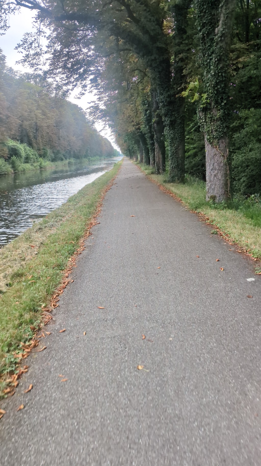 Como hoy tocan muchos km pedaleando al lado del canal del Rhon, decido hacer otros 6km por carretera para ir al Super U, un supermercado mucho más grande. Llego pasadas las 8:30 y también lo encuentro cerrado. Algo extraño pasa, ya que las panaderías también están cerradas. Reviso el día, estamos a lunes. No hay gente en la calle, ni niños, ni casi coches. Pero bueno, hace muy mal día y es temprano, yo tampoco estaría en la calle… Busco en internet y resulta que hoy es un día festivo en Francia, así que no tengo más remedio que avanzar por el canal hasta el km 50, donde decido parar y sacar unas fajitas para untarlas con paté. No es el mejor desayuno, pero es lo único que tengo. También empieza justo a llover, así que aprovecho para ponerme el chubasquero.