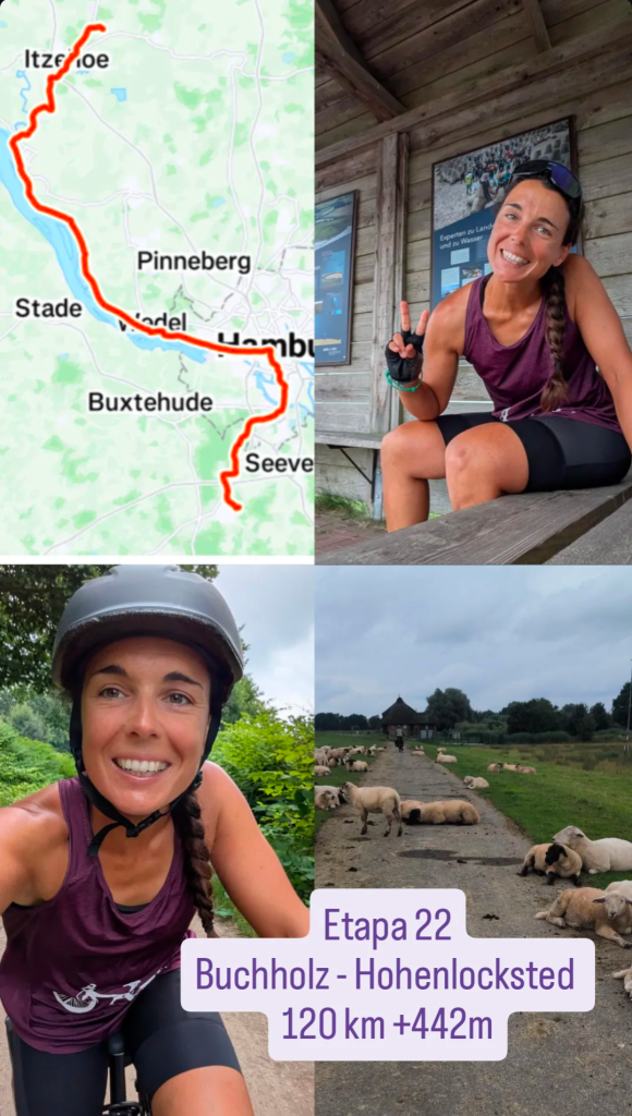 Salgo de Hamburgo al lado del río Elba durante 60km aproximadamente. La mayor parte del tiempo va por una pista asfaltada perfecta y llena de ovejas por todos lados. Hay que ir abriendo y cerrando puertas. Eso es lo que menos me ha gustado, pero el camino era bonito, haciendo zigzag entre ovejas, jejeje…