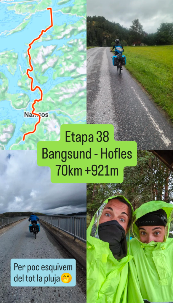 Mañana siguen dando lluvias aunque no podemos decidir nada hasta que no nos despertemos. Nuestro plan es mirar el radar y si son lluvias intermitentes como hoy, ir avanzando poco a poco. A lo largo del recorrido hay algunos campings. El primer pueblo (y único) a 15 km (para comprar galletas, plátanos y algo que nos apetezca en ese momento). A partir de ahí iremos viendo cómo evoluciona y si no, nos quedaremos aquí, que se está muy bien también y tenemos margen de días!