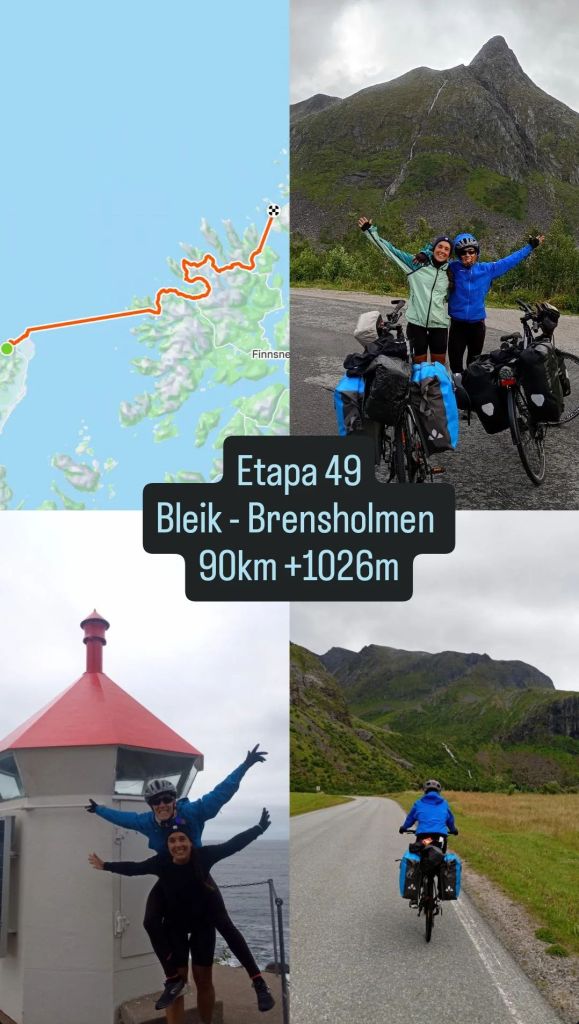 A escasos 7km de llegar al ferry, a Aída parece que se le estropea del todo el buje de la bicicleta, así que toca empujar. No sabemos muy bien cómo pero a los 5 minutos vuelve a funcionar y consigue llegar hasta el puerto donde, finalmente, ya no puede pedalear. No obstante, estamos de suerte, porque la etapa ya acabava aquí y desde el otro lado podrá coger un bus mañana hasta Tromso, donde se encuentran los talleres de bicicletas.Solo son 55km y nuestra etapa ya iba a finalizar ahí.