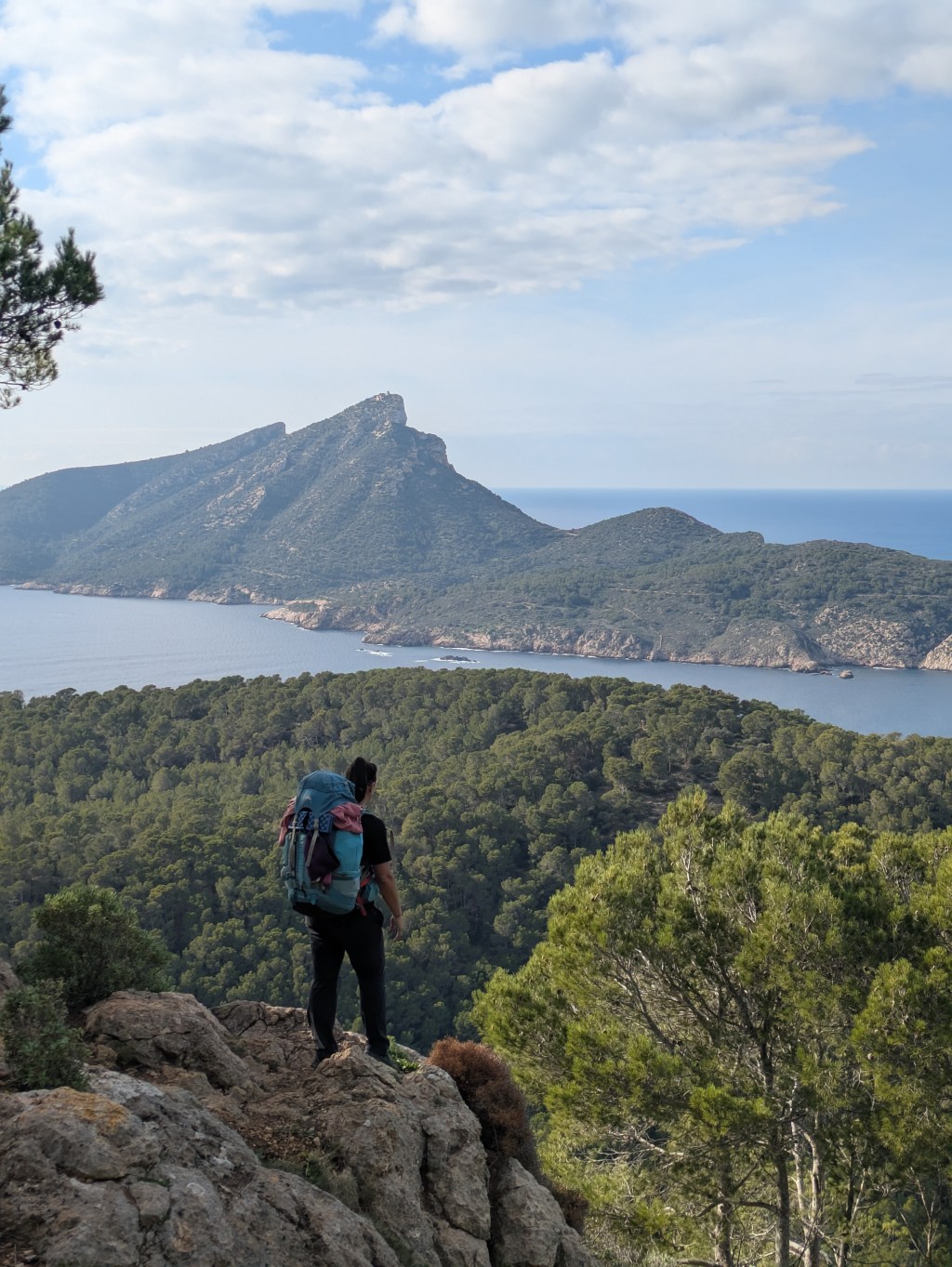 Tras salir de Andrax subimos por una pista asfaltada y luego por un pequeño sendero cuesta arriba. Una vez en lo alto, observamos la isla de San Dragonera y seguimos camino, ahora cuesta abajo hasta Sant Elm.