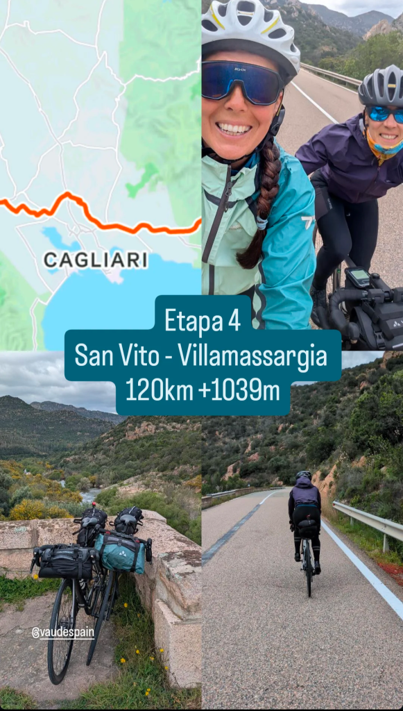 Vamos por carreteras secundarias y subimos un puerto muy llevadero y tranquilo, de esos que casi te reconcilian con las subidas. A la bajada, nos abrigamos y empezamos el descenso hasta la altura de Cagliari, donde la carretera se vuelve mucho más densa de tráfico y el arcén desaparece.