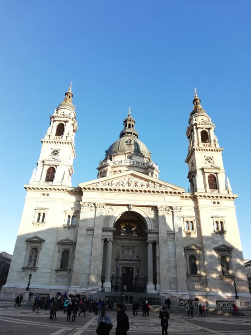 Nuestra guía es una chica húngara, llamada Guilia. Nos cuenta que en la básica se encuentra la segunda reliquia más importante de Hungría: la mano momificada de un rey. Su altura es justo la misma que el Parlamento, 96m. Se hizo así con la finalidad de dar a entender que ni la iglesia ni la política son superiores las unas a las otras. A su vez, ningún edificio puede ser más alto que estas dos edificaciones.