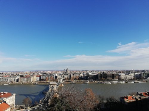 De bajada, visitamos los jardines del castillo de Buda, aunque mucho jardín tampoco vimos… Cruzamos el puente de las cadenas y nos acercamos al Parlamento. Hacemos fotos de los alrededores y cogemos información para acabar de decidir si mañana entramos o no a visitarlo porque nos ha parecido impresionante.