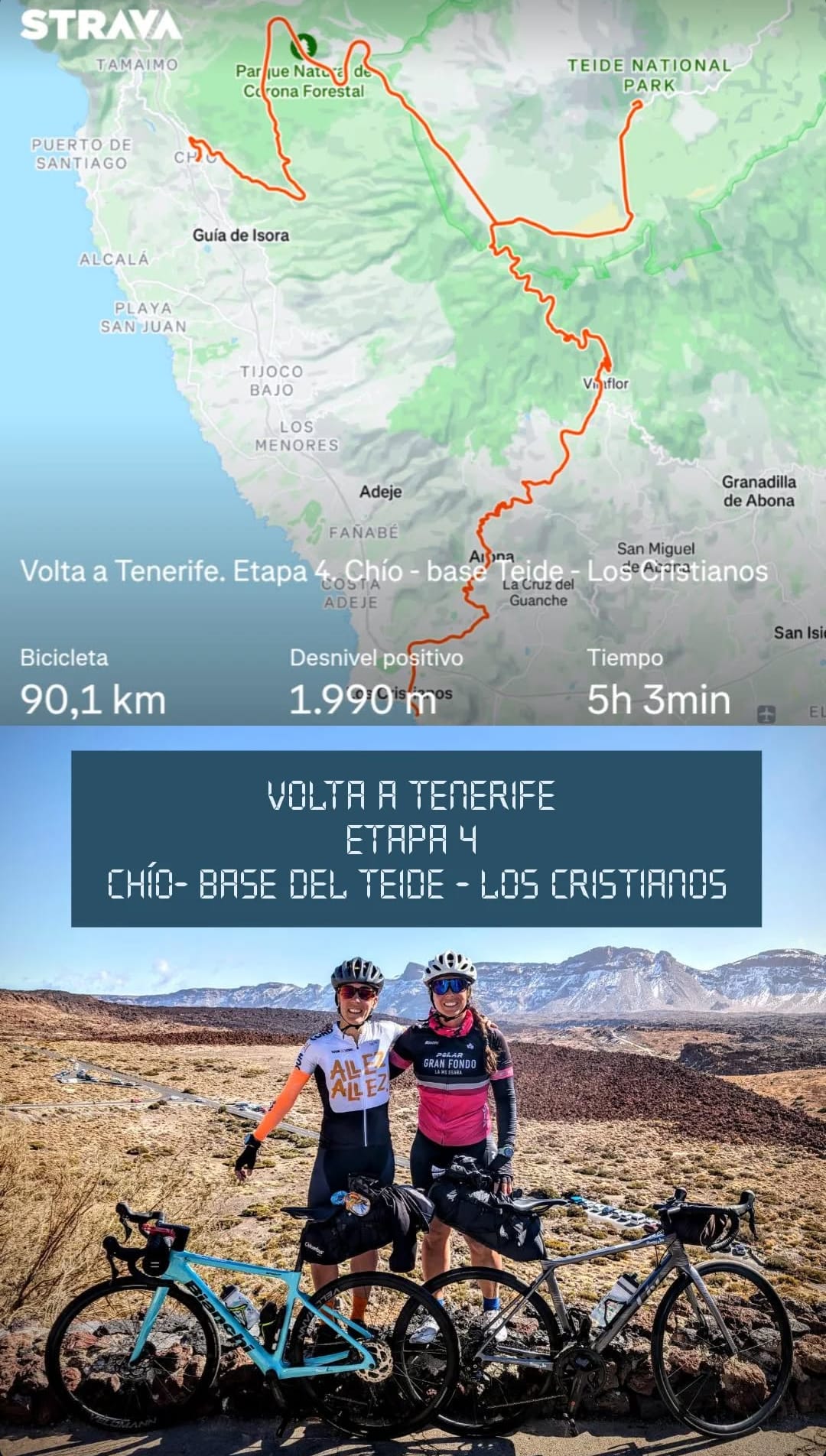 Etapa 4. Chío- Base del Teide- Los Cristianos. 90 km + 1990 m Aquí tiens el track