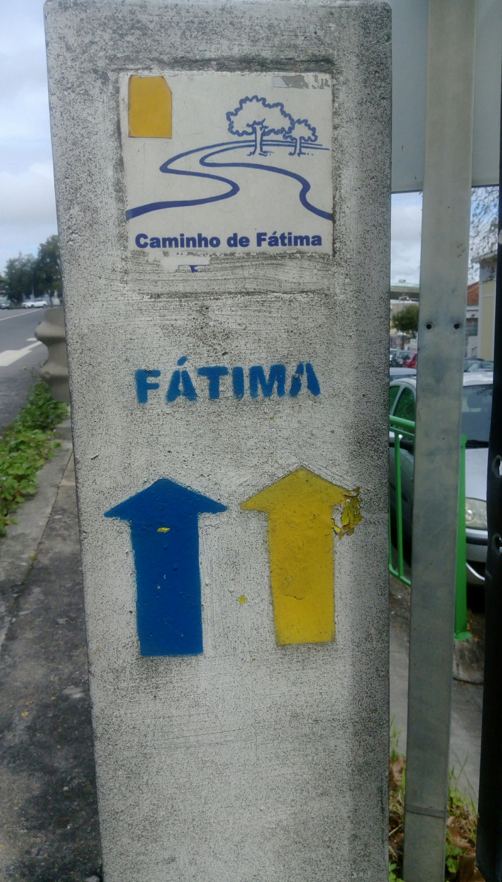 A los pocoa metros de empezar el camino, un coche nos para diciendo que vamos por la calzada antigua y que para las bicicletas mejor tomar otro camino… así que, el hombre, muy majo, nos guia. El va delante, conduciendo despacito porque hay unas subidas que parecen interminables. Nos esforzamos al máximo para que parezca que no nos cuesta… finalmente el hombre se para y nos enseña las flechas amarillas. Ahora sí que vamos por el buen camino.