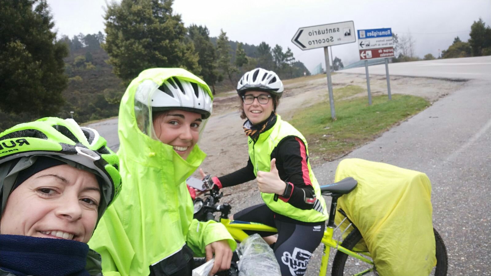 La subida en bici no es tan dura como parece. Lo único malo es llevar el chubasquero empapado por fuera de agua y por dentro de sudor.