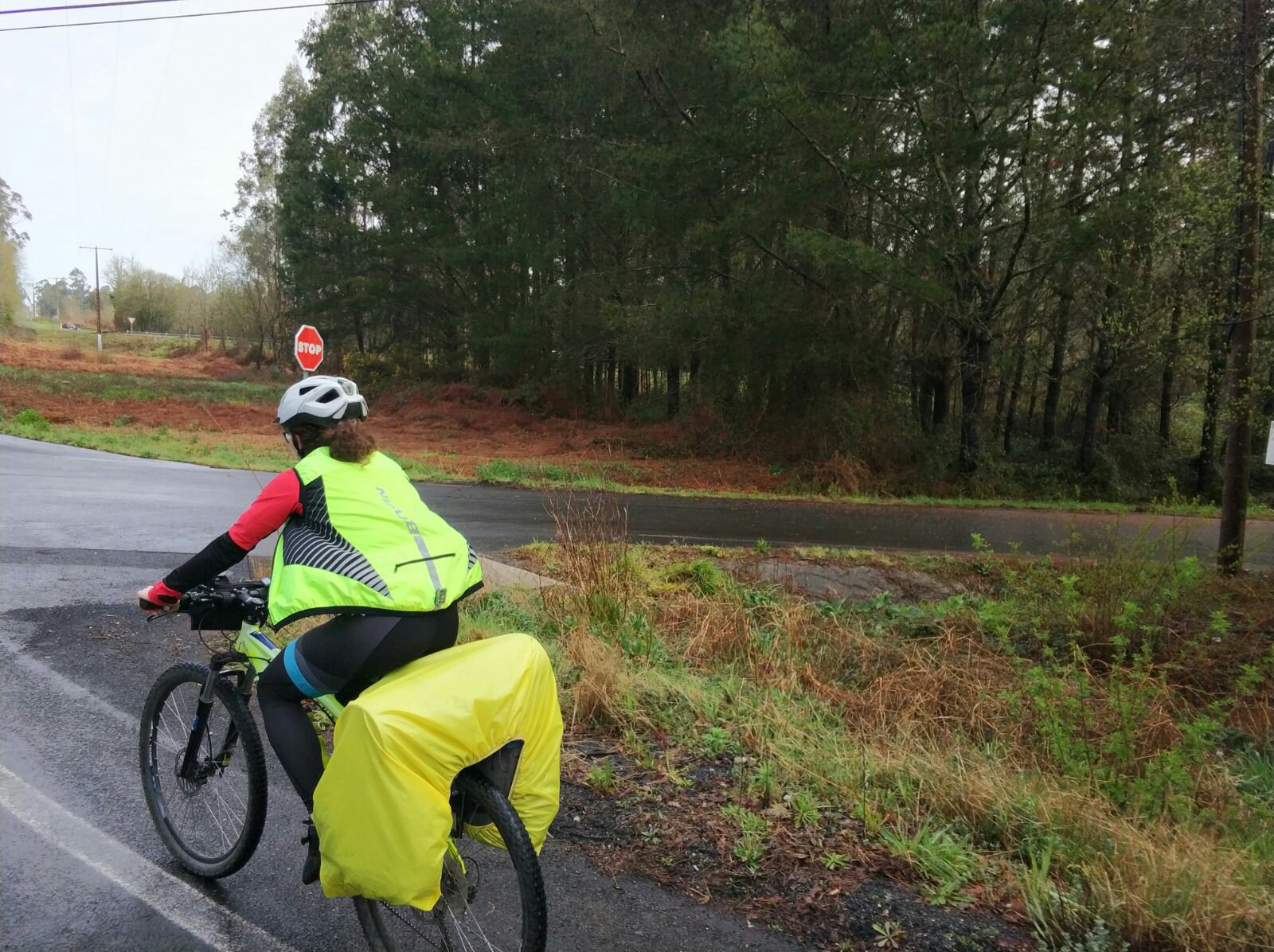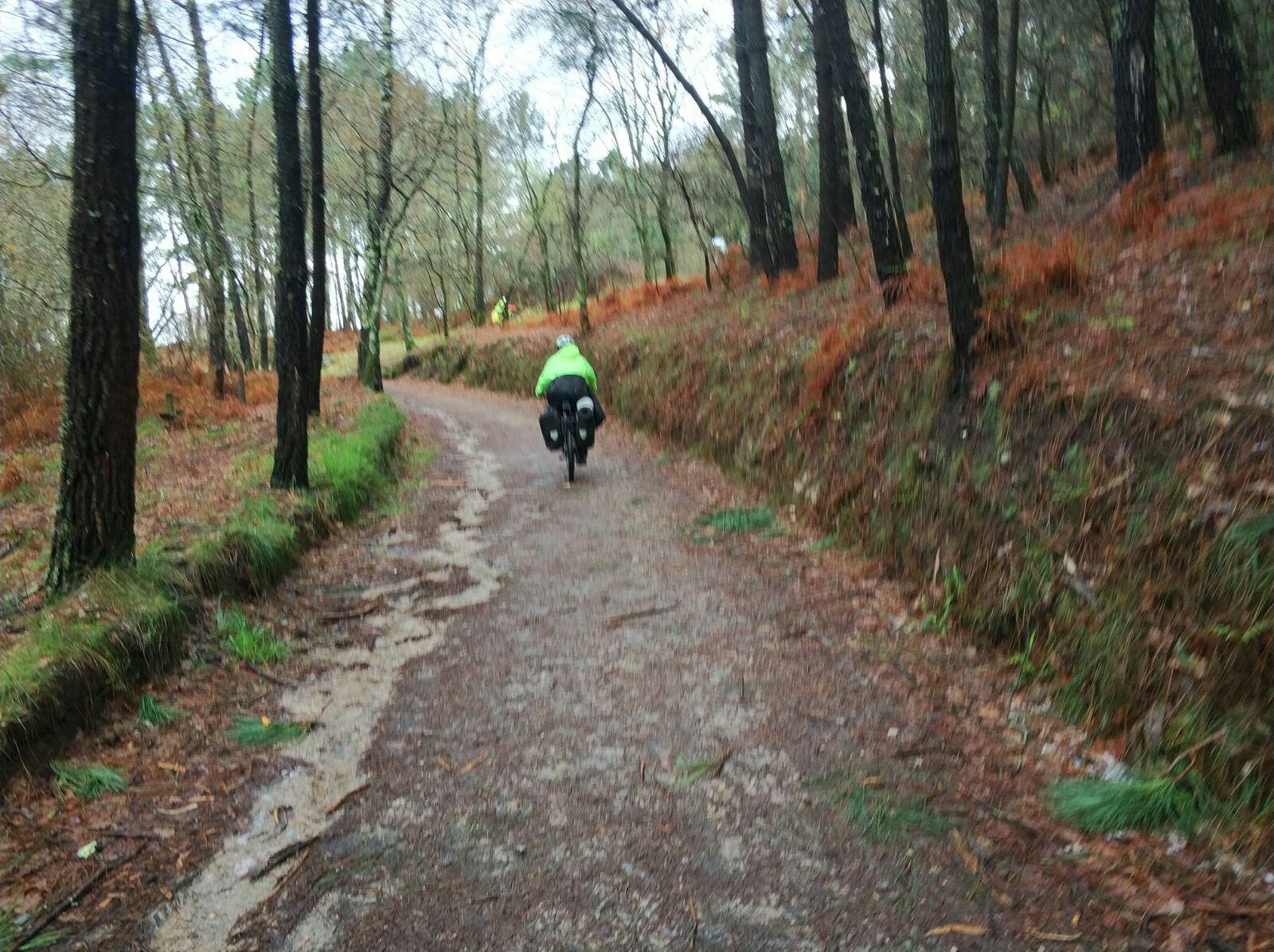 La lluvia nos empapa, subidas largas y algunas bajadas merecidas pero el frio de la lluvia no nos deja disfrutarlas.