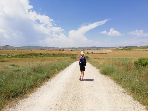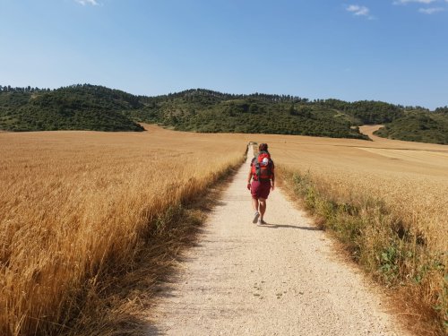 El camino es parecido al de ayer, rodeadoa de campos de ceereales y paralelos a la nacional. Vamos caminando junto con Ana (de Tudela), Jose (de Valencia) y Nicolas (de francia). Este último ha salido desde su casa, 68 dias atrás y ya lleva más de 1700 km a sus pies.