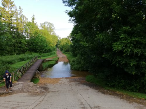 En un riachuelo, intentandome refrescar la pierdo de vista y sigo mi camino sola. Creo que nunca habia pasado tanto calor.