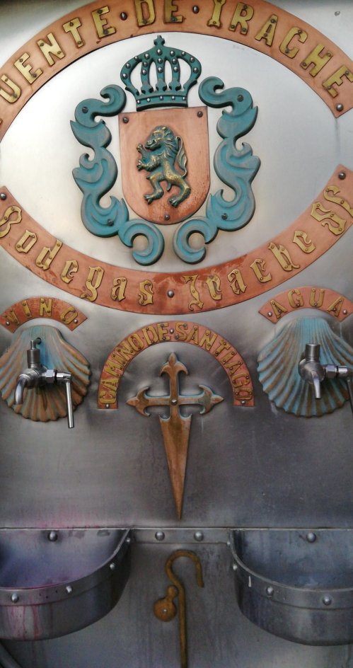 Mientras ellas toman café a las 5.45 de la mañana, yo empiezo sola caminando. Encuentro una fuente de donde sale vino gratuito y, aunque no me guste el vino, lo pruevo, como es gratis… Jajaja…
