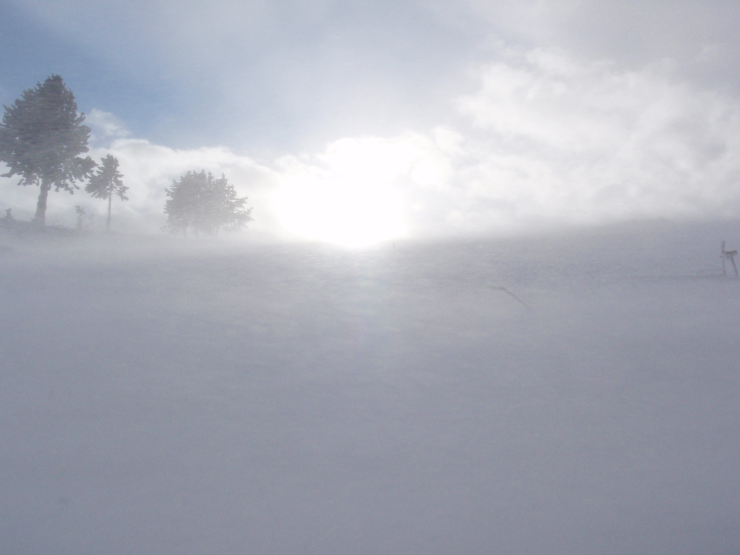 Decidimos ponernos las pilas y salir del refugio. Si el temporal seguía igual, no podríamos llegar a la cima. Cada vez nueva más, seguimos la pista dirección a la cima, cuesta caminar por la pista, abriendo camino y con mucho frío, pero sin miedo, seguimos avanzando.